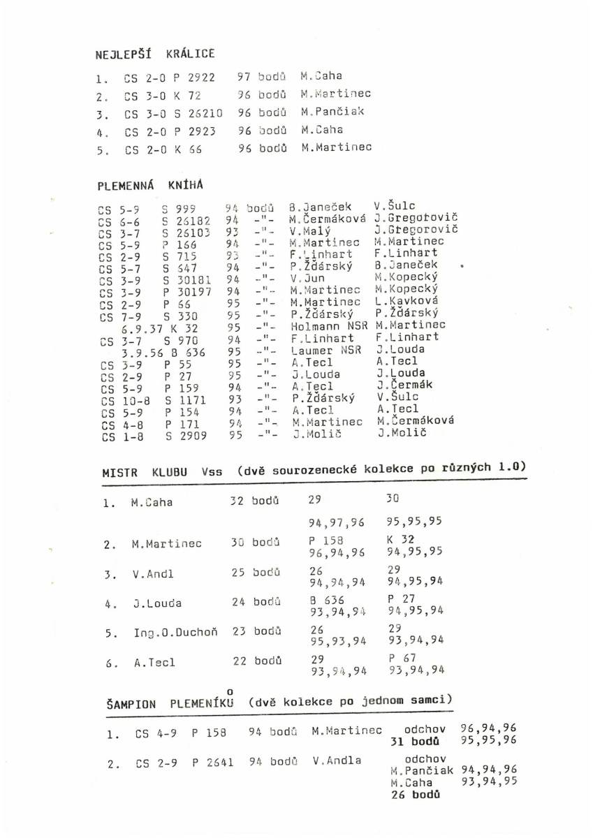 Typizace plemenných králíků Vss